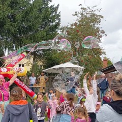 W ramach imprezy przewidziano moc atrakcji dla całej rodziny. Były m. in. dmuchańce i basen z kulkami dla najmłodszych, fotolustro, które zawsze cieszy się ogromnym zainteresowaniem. Gry i zabawy prowadzone przez Pana Wojciecha Szymańskiego, były bardzo dużą atrakcją. Pan Wojciech angażował do zabawy całe rodziny. Oczywiście konkurencje były nagradzane drobnymi upominkami i słodkościami, a wszystko to przyczyniało się do nieustającej radości i zdrowych uśmiechów na twarzach dzieci, rodziców i dziadków. Zawitali też Klauni Kulki, który zaprezentowali dla najmłodszych niezwykłe widowisko rozrywkowe pt. "Zaginione cukierki". Dzieci uczestniczyły w interaktywnej zabawie i deszczu baniek mydlanych. Same mogły również wydmuchiwać swoje bańki, które tworzyły jeszcze większą atrakcję. Dodatkowo dzieci mogły uczestniczyć w warsztatach garncarskich z Panem Arkuszyńskim, który prezentuje i omawia temat garncarstwa tradycyjnego, cieszącego się ogromnym zainteresowaniem wśród małych i dużych. Kolejki dzieci stały przy namiocie, gdzie uczennice Zespołu Szkół im. M. Rataja w Gościnie zaplatały dzieciom warkoczyki oraz malowały twarze a także brokatowe tatuaże. Z pod namiotu wychodziły małe tygryski, motylki, kotki, pieski itp. Na pikniku pojawili się również druhowie z OSP w Gościnie, którzy prezentowali pierwszą pomoc. Wszyscy uczestnicy spotkania mieli okazję przypomnieć sobie zasady ratowania drugiego człowieka. Pojawili się też funkcjonariusze Policji, którzy umożliwili dzieciom obejrzenie radiowozu a dorośli mogli przymierzyć alkogogle, które symulują stan obniżenia koncentracji. Pokaz miał na celu uświadomienie kierowcom, że warto być trzeźwym za kierownicą. Można było również skorzystać z porady profesjonalnej pielęgniarki, która chętnym wykonywała pomiar ciśnienia i poziomu cukru. Ustawiona również była strzelnica, gdzie można było popróbować swoich sił w strzelaniu z broni palnej do celu. Można było również pozyskać wiedzę nt. jak rozkładać i składać broń. Było również tanecznie – wystąpiła na scenie formacja taneczna ADHD, ale było też coś dla miłośników wierszy i literatury. Lawendowe Panie działające przy Centrum Kultury i Książki w Gościnie/Bibliotece przedstawiły inscenizację wiersza Jana Brzechwy pt. "Kaczka dziwaczka" oraz Juliana Tuwima "Paweł i Gaweł". Natomiast z inicjatywy Pani Renaty Maksymiuk Panie Danuta Frankowska i Zofia Czerniszewska w ramach 12. edycji Narodowego czytania zaprezentowały fragment opisu z powieści pt. "Nad Niemnem" Elizy Orzeszkowej. Panie zaprezentowały się wspaniale! Nie zabrakło również pysznego bufetu, a w nim: zupa pomidorowa, kiełbaski z grilla, gorące pierogi, domowe wypieki, lody, wata cukrowa, popcorn, gofry no i zdrowe i smaczne jabłka. Imprezę zakończyliśmy mini festiwalem kolorów. Było pięknie, słonecznie, wesoło, zabawnie, smacznie, kolorowo, tanecznie i przede wszystkim rodzinnie.